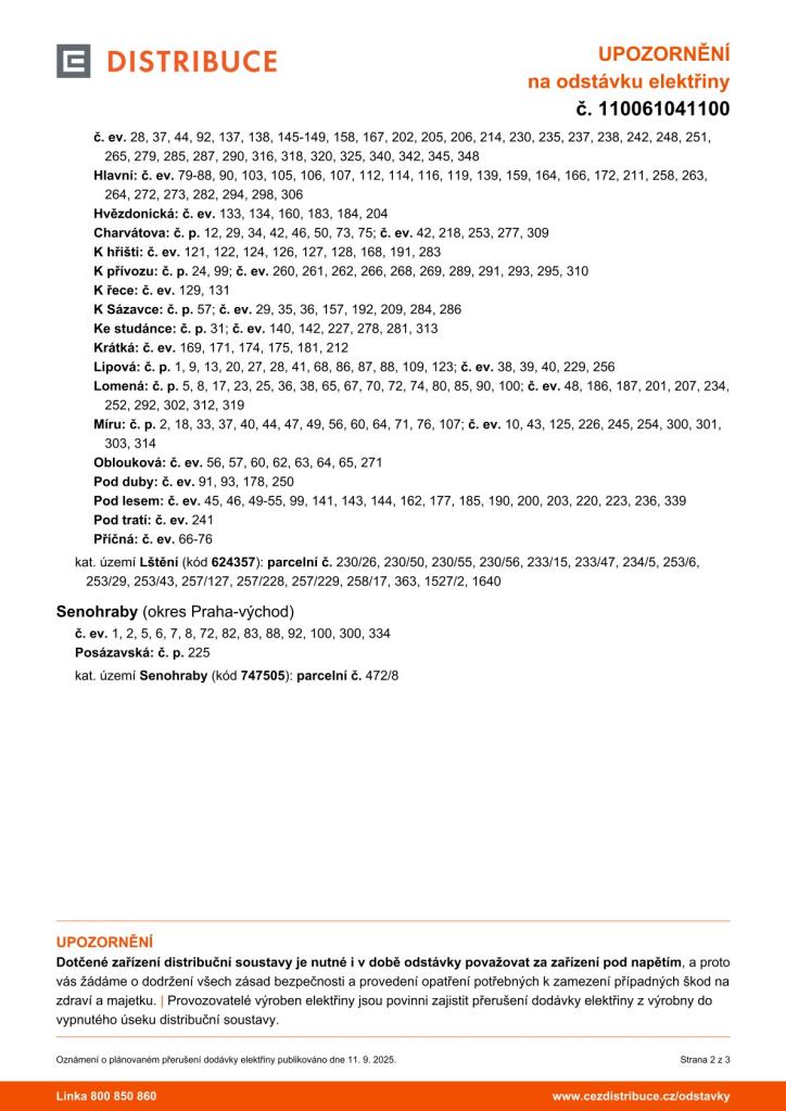 Plánovaná odstávka el. energie 2. 10.