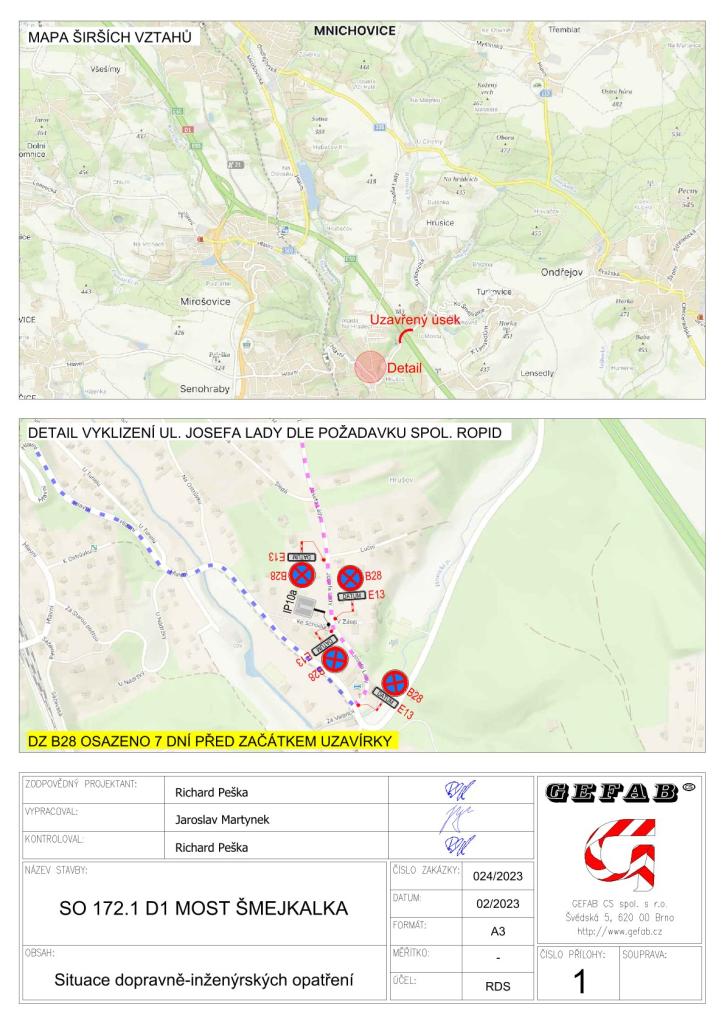 Autobusová linka 651 bude vedena po objízdné trase po ulici Josefa Lady. Zastávka Na Šmejkalce je pro linku 651 zrušena bez náhrady.