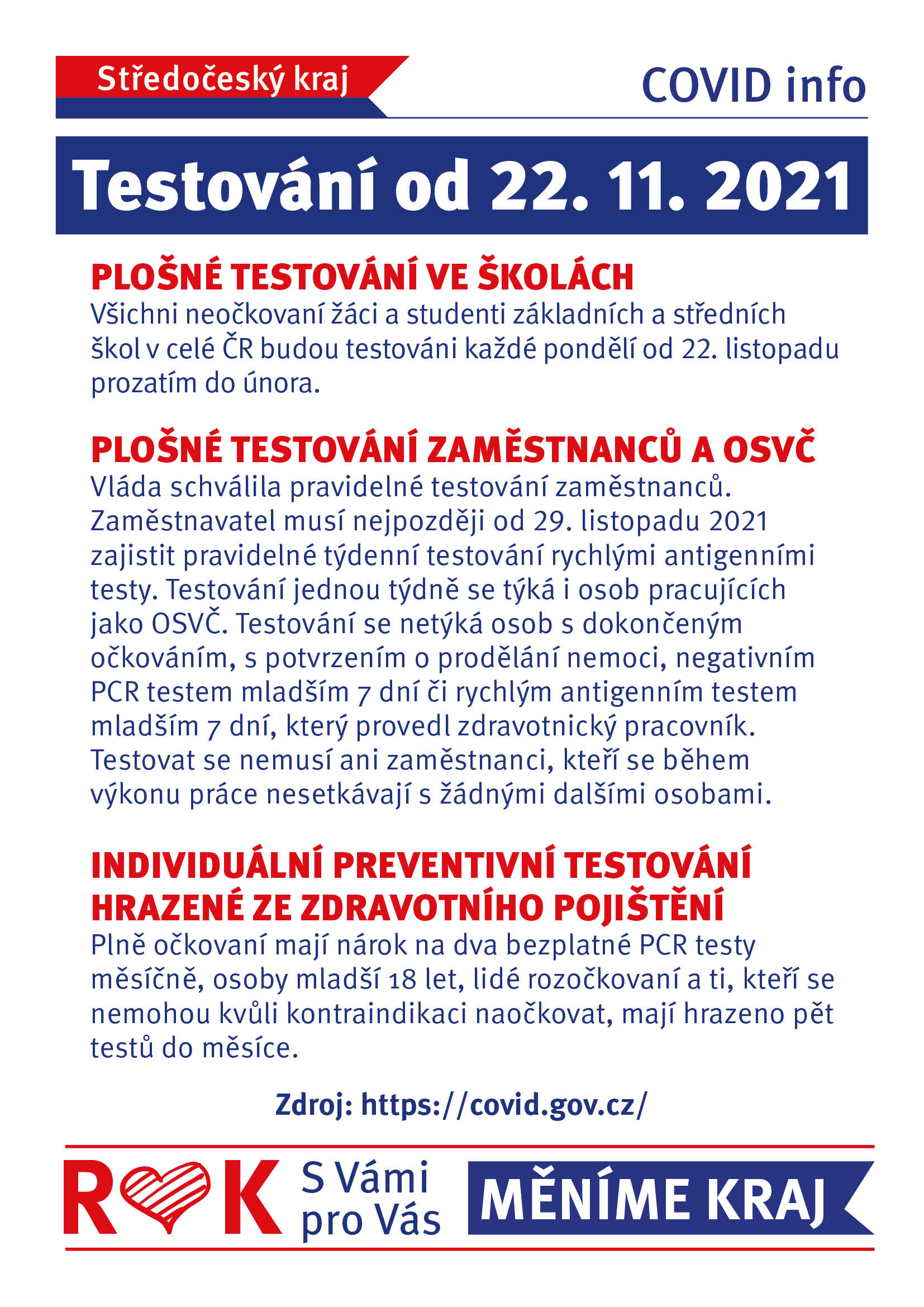 Informační letáky hejtmanky s informací k změnám opatření s platností od 22. listopadu 2021.