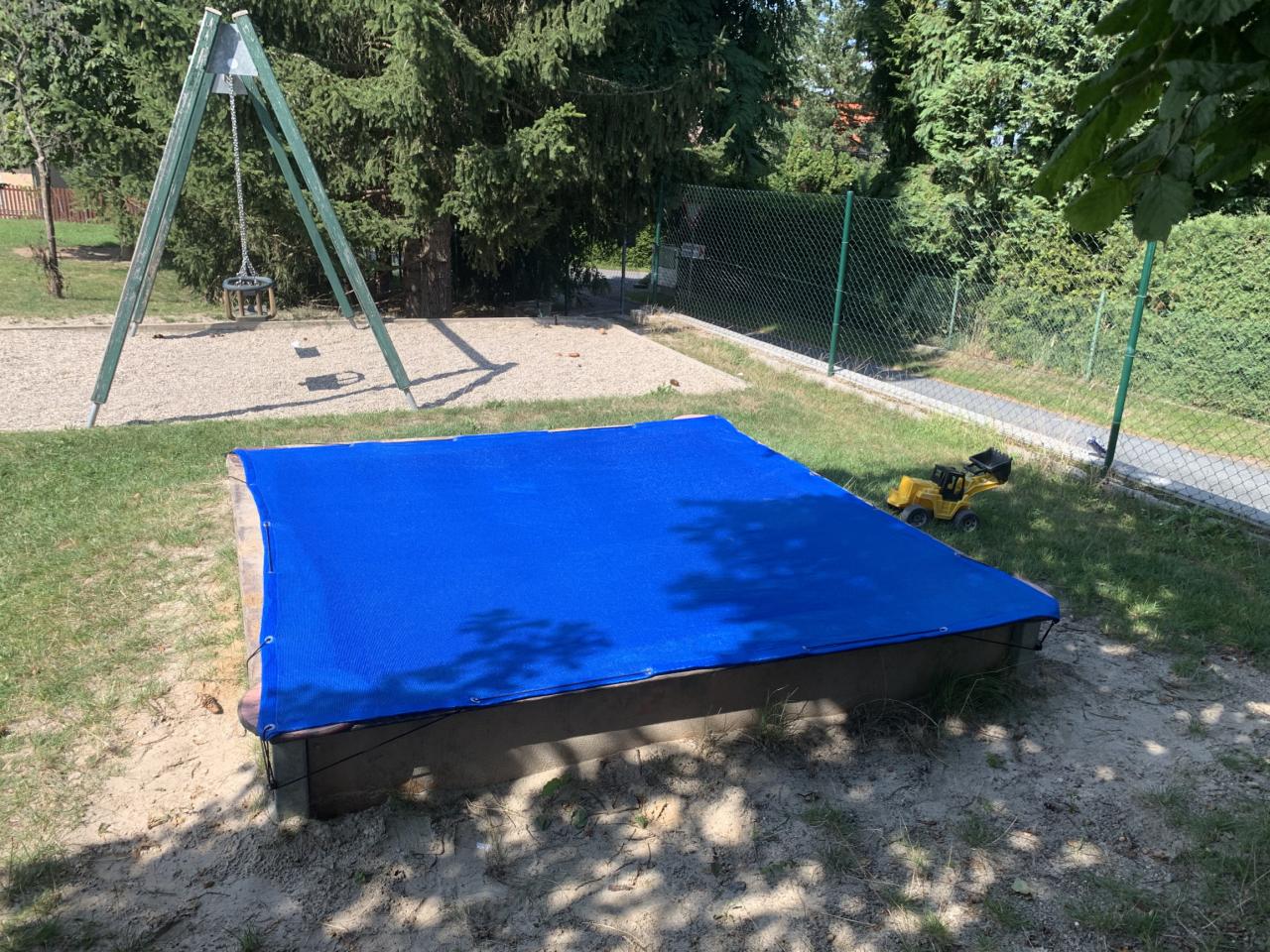 Na obecním hřišti u školy bylo vyčištěno pískoviště, dosypali jsme nový písek a zakoupili zakrývací plachtu. Prosíme všechny, kteří si na písku budou hrát, aby důsledně pískoviště zakrývali, abychom předešli znečištění. Děkujeme
